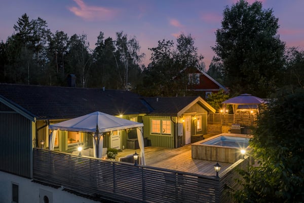 På huset finns det även solpaneler som genererade 6000 kwh år 2024. Beräknad årsförbrukning är 6900 kwh.