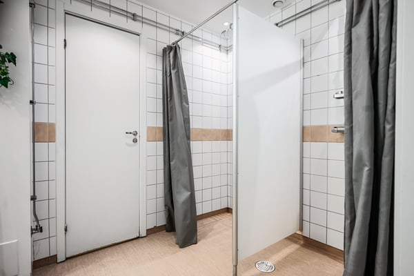 Bastu, förråd, samlingslokal, övernattningslägenhet och tvättstuga.